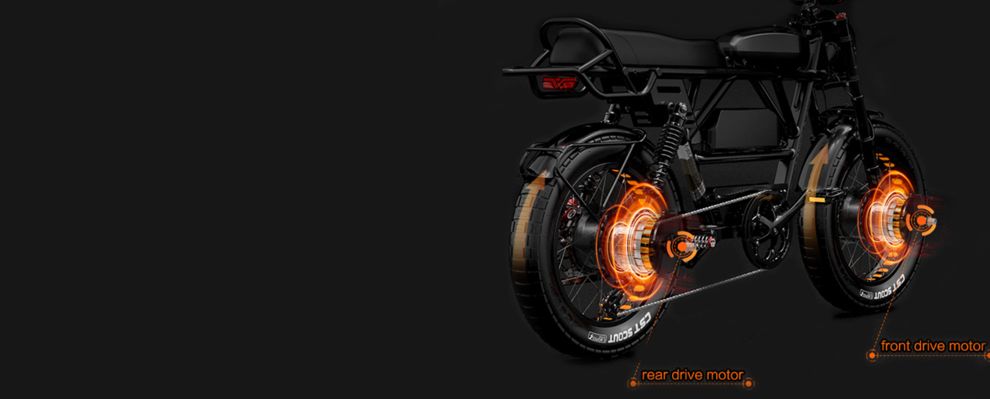 | Motor | 48V 1000W front drive brushless motor and 1000w rear drive brushless moto, max torque 95Nm | |